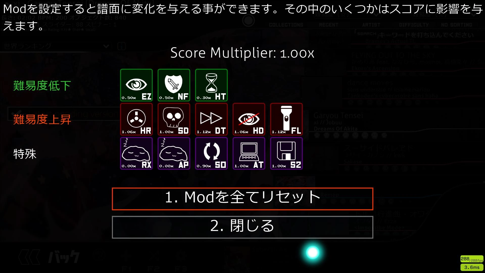| Nikkyou Sans | back button, song select, mod text |